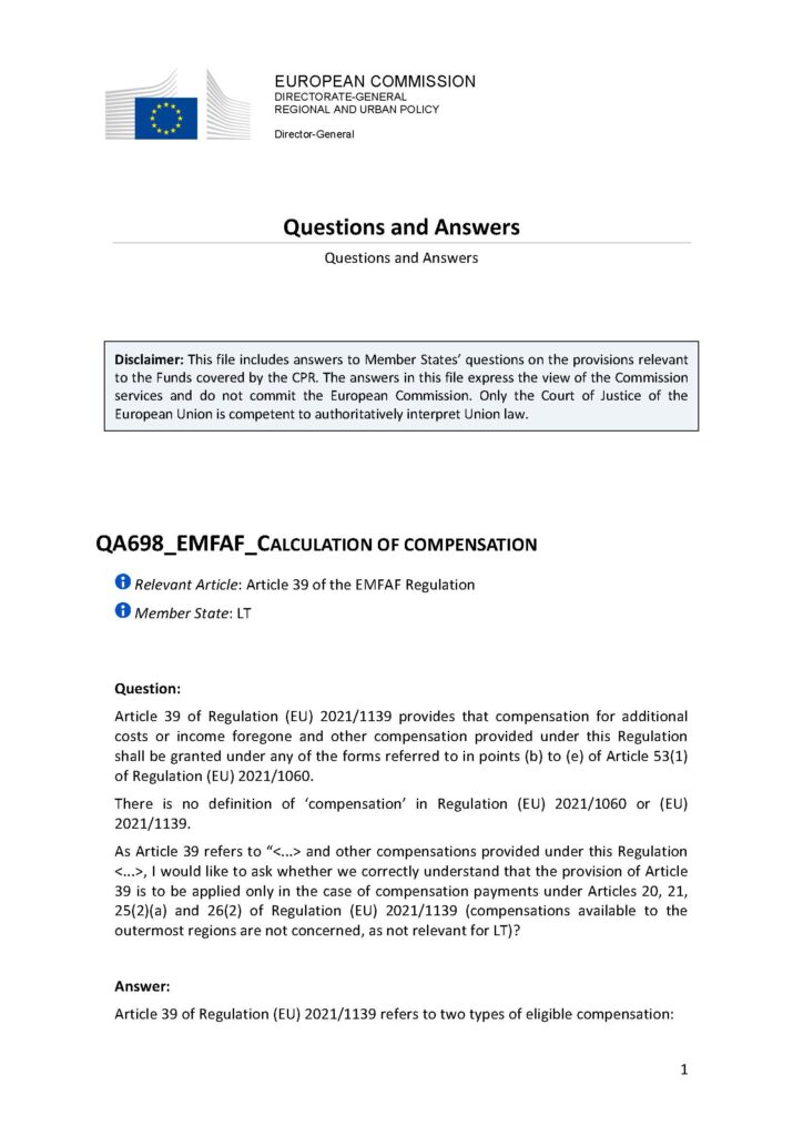 De notar que, as respostas ali sistematizadas expressam apenas a interpretação dos serviços da Comissão Europeia e não a vinculam juridicamente, uma vez que apenas o Tribunal de Justiça da União Europeia é competente para prestar uma interpretação juridicamente vinculativa do direito da União.