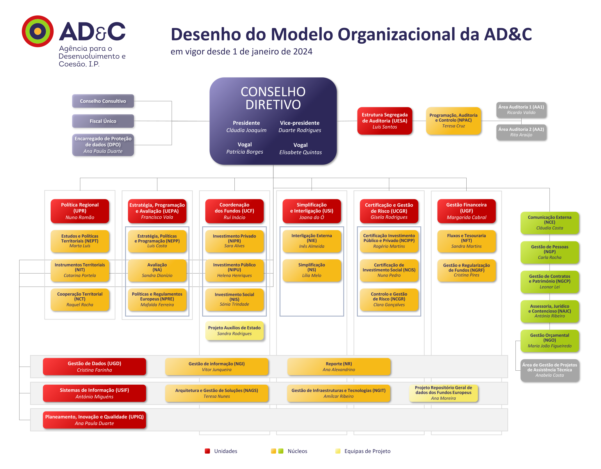 O Conselho Diretivo é composto por uma Presidente, Cláudia Joaquim, um Vice-presidente, Duarte Rodrigues, e por duas Vogais, Patrícia Borges e Elisabete Quintas.